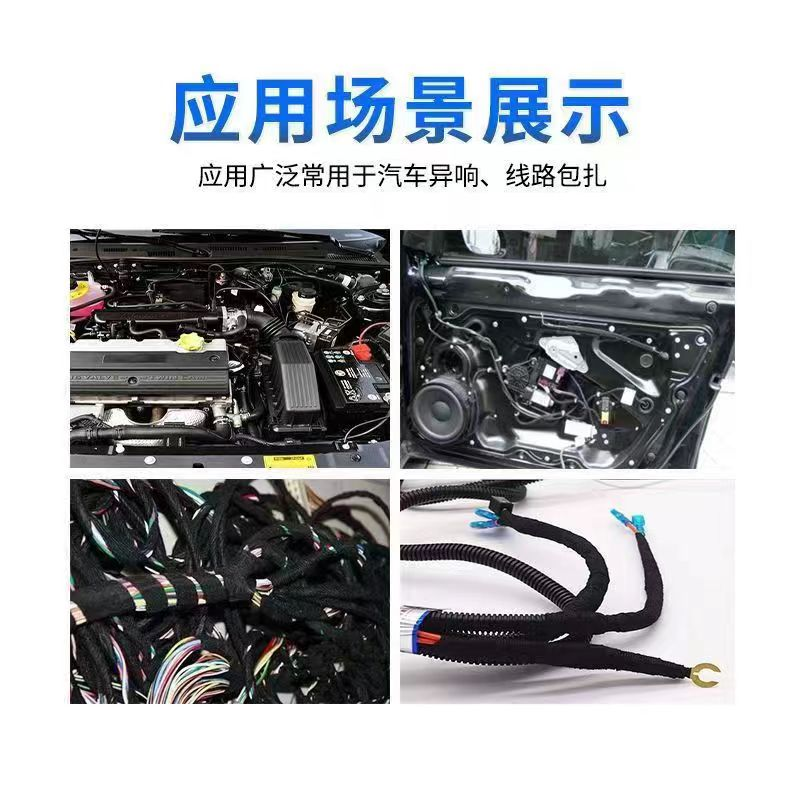 專用于汽車工業(yè)線束纏繞。柔軟的基材使得本產(chǎn)品特別適用于汽車內(nèi)部線束的生產(chǎn),同時也可達(dá)到減小噪音的效果。